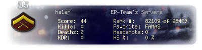 | Kill-streak | 0 | Death-streak | 3 | Team Kills | 0 |