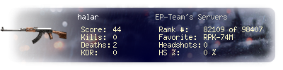 | Suicides | 0 | Headshots | 0 | Headshot / Kill | 0 % |