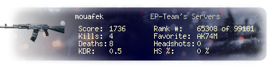 | Kill-streak | 1 | Death-streak | 5 | Team Kills | 0 |
