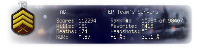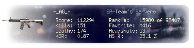 | Kills | 151 | Deaths | 174 | Kill / Death | 0.87 |