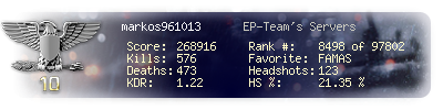 Kills | 576 | Deaths | 473 | Kill / Death | 1.22 |