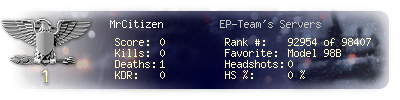 | Suicides | 0 | Headshots | 0 | Headshot / Kill | 0 % |