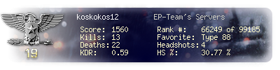 | Kill-streak | 4 | Death-streak | 9 | Team Kills | 0 |