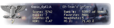 | Kills | 7 | Deaths | 15 | Kill / Death | 0.47 |