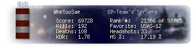 Suicides | 1 | Headshots | 33 | Headshot / Kill | 17.19 % |