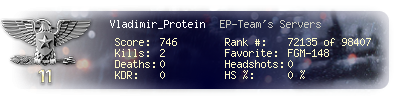 | Suicides | 0 | Headshots | 0 | Headshot / Kill | 0 % |