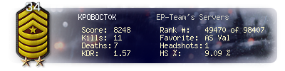 | Kill-streak | 5 | Death-streak | 5 | Team Kills | 0 |