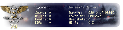 | Suicides | 0 | Headshots | 0 | Headshot / Kill | 0 % |