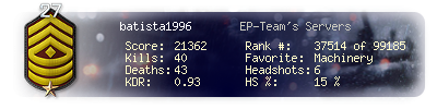 | Suicides | 5 | Headshots | 6 | Headshot / Kill | 15 % |