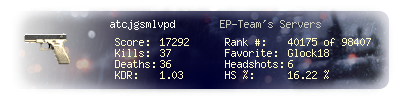| Suicides | 0 | Headshots | 6 | Headshot / Kill | 16.22 % |