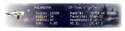 | Kill-streak | 6 | Death-streak | 8 | Team Kills | 0 |