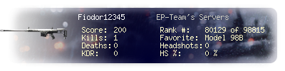 | Suicides | 0 | Headshots | 0 | Headshot / Kill | 0 % |