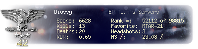 | Kill-streak | 3 | Death-streak | 5 | Team Kills | 0 |