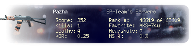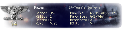 | Kill-streak | 1 | Death-streak | 3 | Team Kills | 0 |