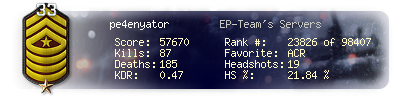 | Suicides | 13 | Headshots | 19 | Headshot / Kill | 21.84 % |