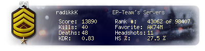| Kills | 40 | Deaths | 48 | Kill / Death | 0.83 |
