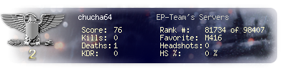 | Suicides | 0 | Headshots | 0 | Headshot / Kill | 0 % |