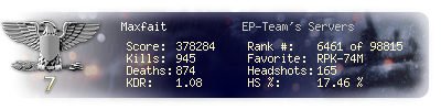 | Kills | 945 | Deaths | 874 | Kill / Death | 1.08 |