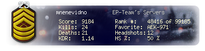 | Suicides | 0 | Headshots | 12 | Headshot / Kill | 50 % |