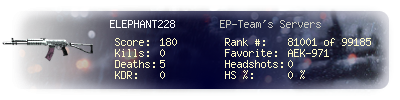 | Kill-streak | 0 | Death-streak | 5 | Team Kills | 0 |