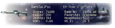 Kills | 200 | Deaths | 314 | Kill / Death | 0.64 |