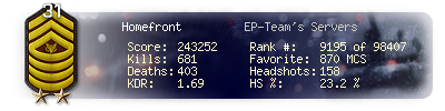 | Kills | 681 | Deaths | 403 | Kill / Death | 1.69 |