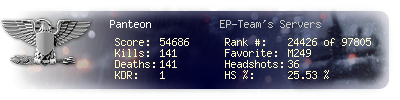 Suicides | 6 | Headshots | 36 | Headshot / Kill | 25.53 % |