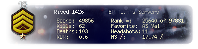 Kills | 62 | Deaths | 103 | Kill / Death | 0.6 |