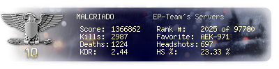 Kills | 2987 | Deaths | 1224 | Kill / Death | 2.44 |