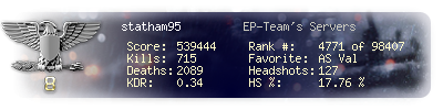 | Kill-streak | 8 | Death-streak | 27 | Team Kills | 0 |