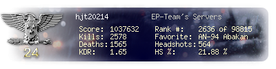 | Kills | 2578 | Deaths | 1565 | Kill / Death | 1.65 |