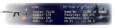 | Kill-streak | 5 | Death-streak | 20 | Team Kills | 0 |