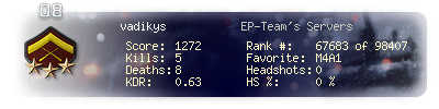 | Kill-streak | 3 | Death-streak | 8 | Team Kills | 0 |