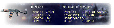 | Kill-streak | 7 | Death-streak | 9 | Team Kills | 0 |