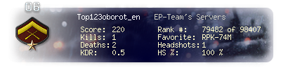 | Kill-streak | 1 | Death-streak | 3 | Team Kills | 0 |