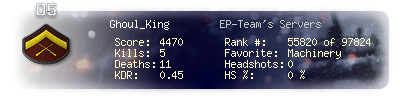 Kill-streak | 1 | Death-streak | 5 | Team Kills | 0 |