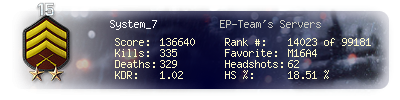 | Suicides | 1 | Headshots | 62 | Headshot / Kill | 18.51 % |