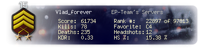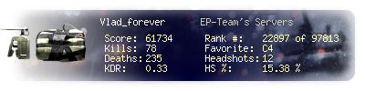 Kill-streak | 5 | Death-streak | 12 | Team Kills | 0 |