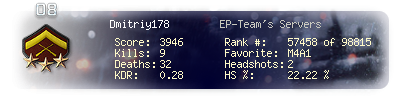 | Kill-streak | 3 | Death-streak | 9 | Team Kills | 0 |