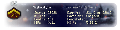 | Kills | 17 | Deaths | 161 | Kill / Death | 0.11 |