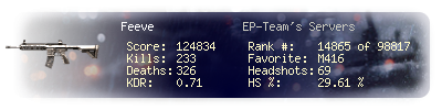 | Kill-streak | 5 | Death-streak | 16 | Team Kills | 0 |