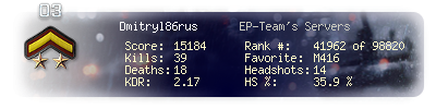 | Suicides | 1 | Headshots | 14 | Headshot / Kill | 35.9 % |