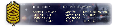 Kills | 394 | Deaths | 268 | Kill / Death | 1.47 |