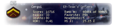 | Kill-streak | 7 | Death-streak | 30 | Team Kills | 0 |