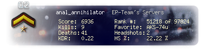 Kills | 9 | Deaths | 41 | Kill / Death | 0.22 |