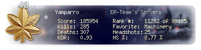 | Kills | 285 | Deaths | 307 | Kill / Death | 0.93 |