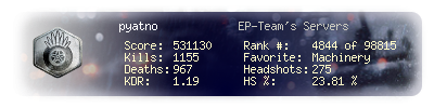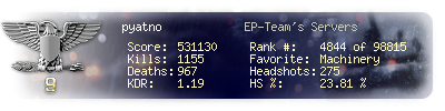 | Kills | 1155 | Deaths | 967 | Kill / Death | 1.19 |