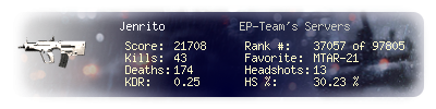Kills | 43 | Deaths | 174 | Kill / Death | 0.25 |