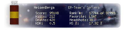Suicides | 6 | Headshots | 38 | Headshot / Kill | 17.92 % |