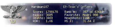 | Kills | 3685 | Deaths | 3469 | Kill / Death | 1.06 |